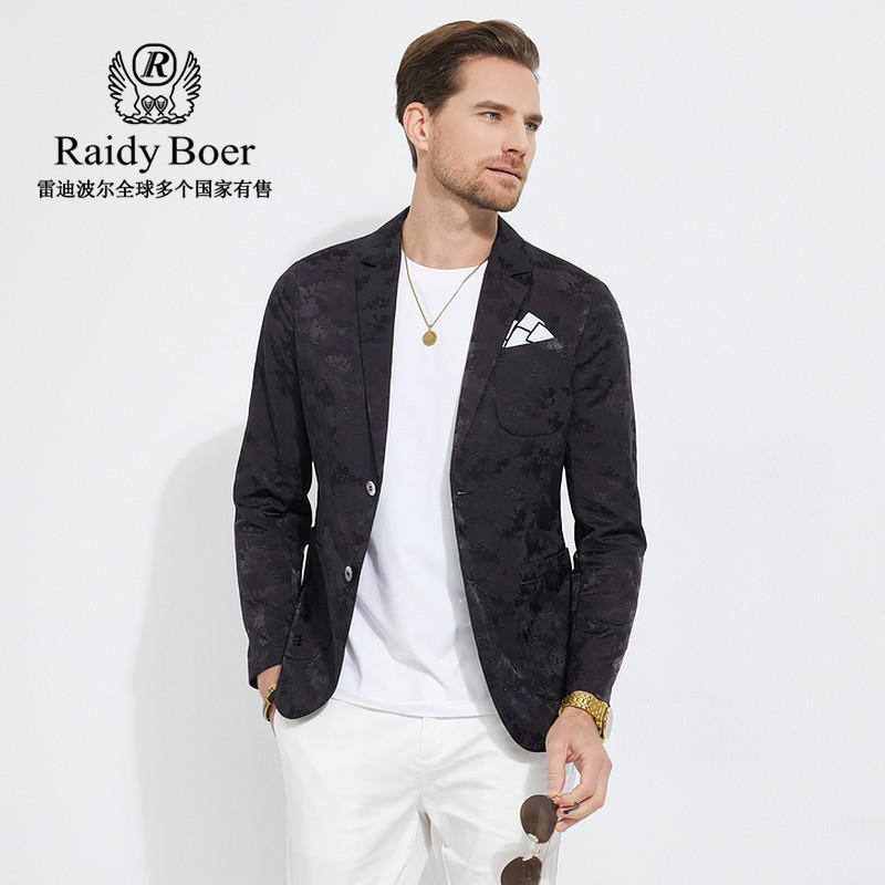 西装 花纹修身 外套男 海澜之家绒感弹力休闲西服男25秋冬新时尚 HLA