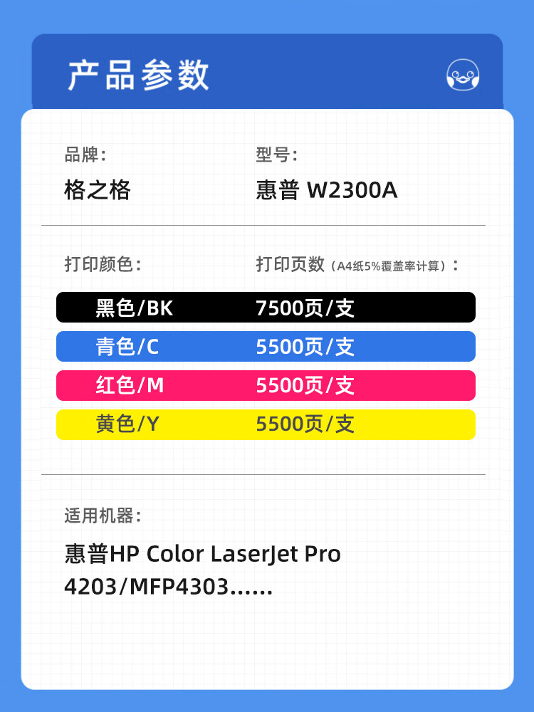 4203激光打印机碳粉盒 MFP4303硒鼓 W2301A 格之格适用惠普W2300A硒鼓 w2303a墨盒 Pro w2302a W2300X硒鼓