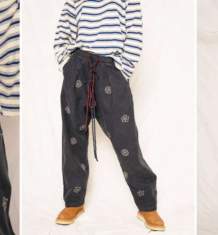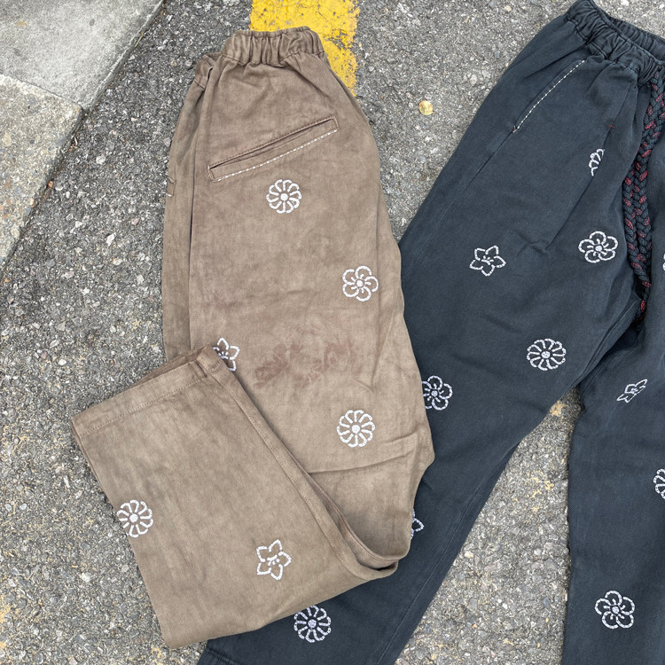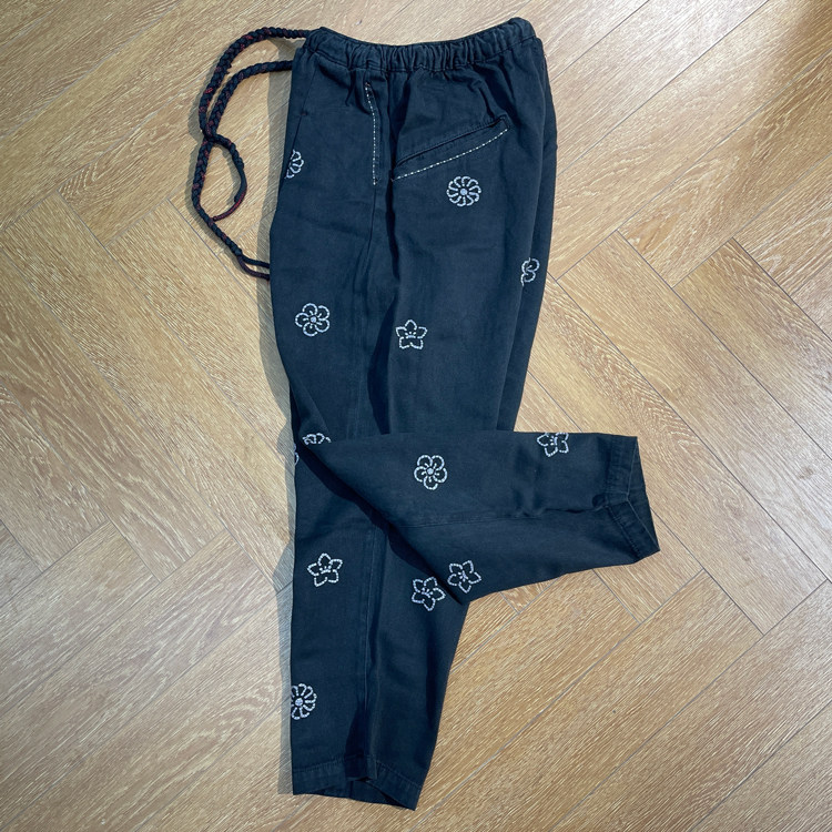 特殊不均匀手工植物染日本刺子花卉刺绣休闲裤 Collectors
