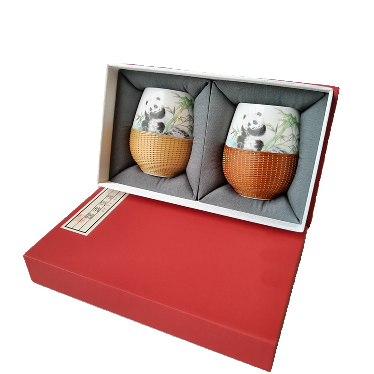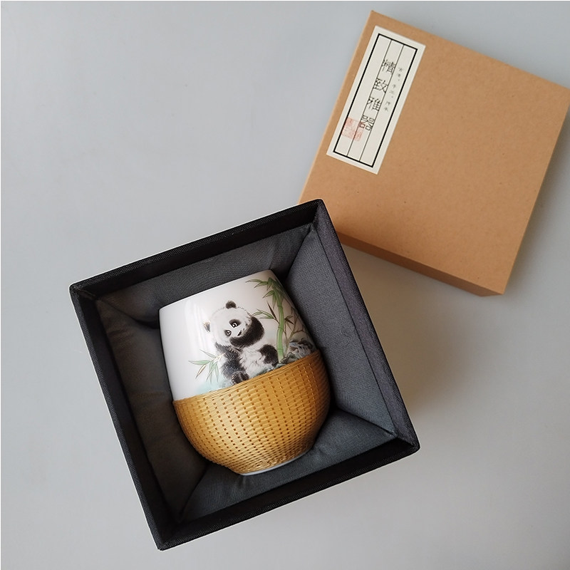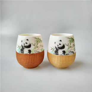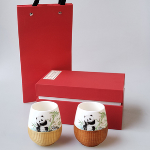 竹丝扣瓷双杯茶具四川非遗礼品商务送礼礼盒装 成都特色熊猫双杯