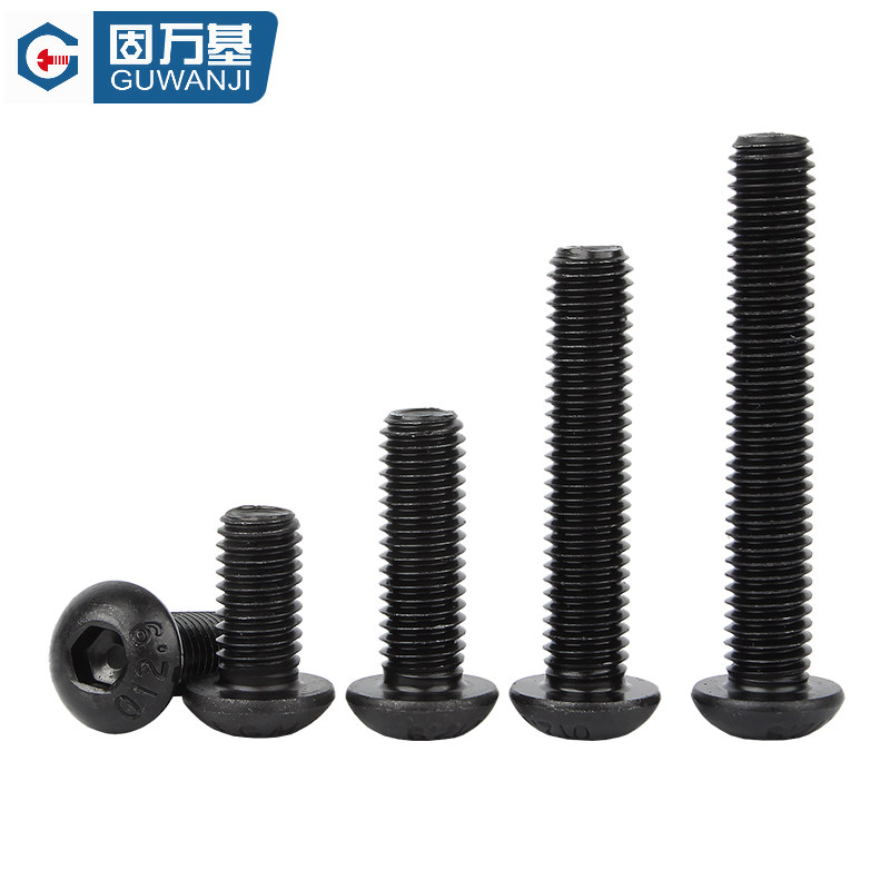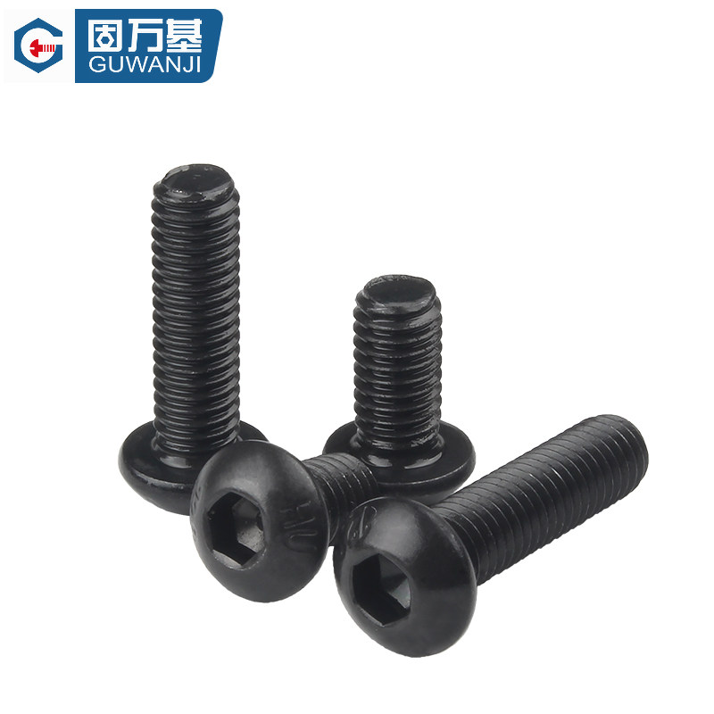 10.9级黑半圆头内六角螺丝圆头蘑菇头圆杯螺栓M3M4M5M6M8M10 M20