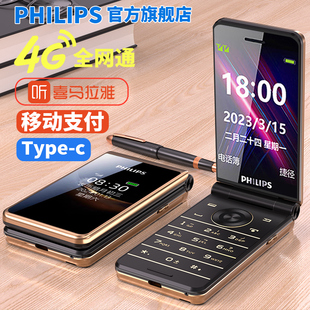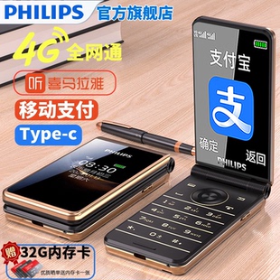 飞利浦E6616翻盖老年机翻盖接听4G全网通超长待机语音播报老人手机一键拨号大字大声按键老人机 官方旗舰店