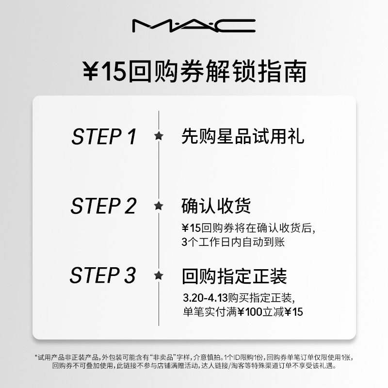 顺手买1件 15元 MAC魅可无瑕粉底液 回购券 1.5ml