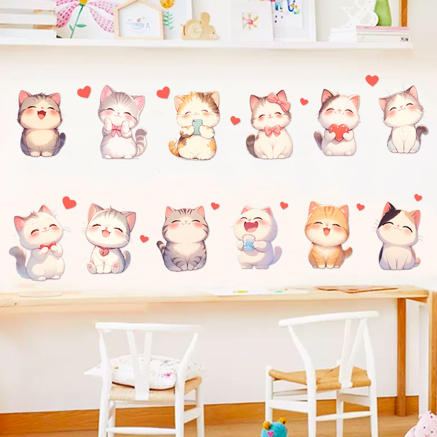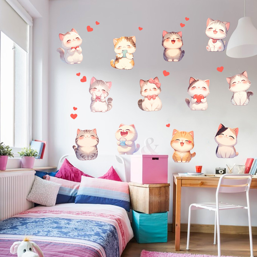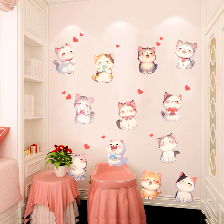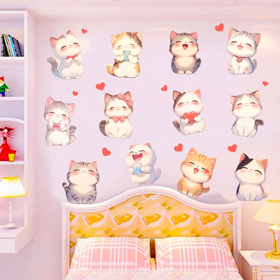 猫咪墙贴纸门贴自粘卡通可爱趣味贴画儿童房布置装 饰墙纸温馨壁纸
