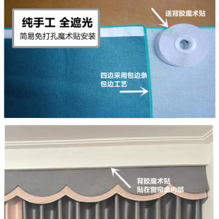 全遮光卧室宿舍魔术贴自粘窗帘头幔帘头顶部漏光窗帘帘头眉头成品