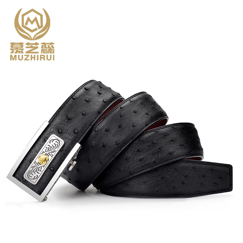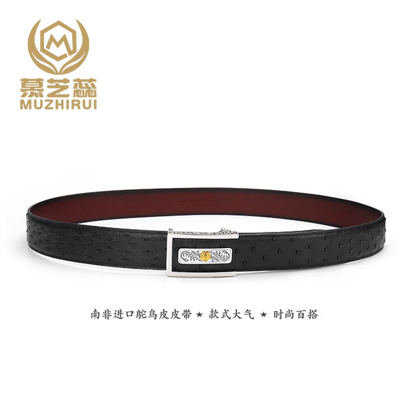 2024新款 腰带男奢侈品真皮925纯银唐草花高档进口鸵鸟名牌商务 裤