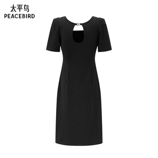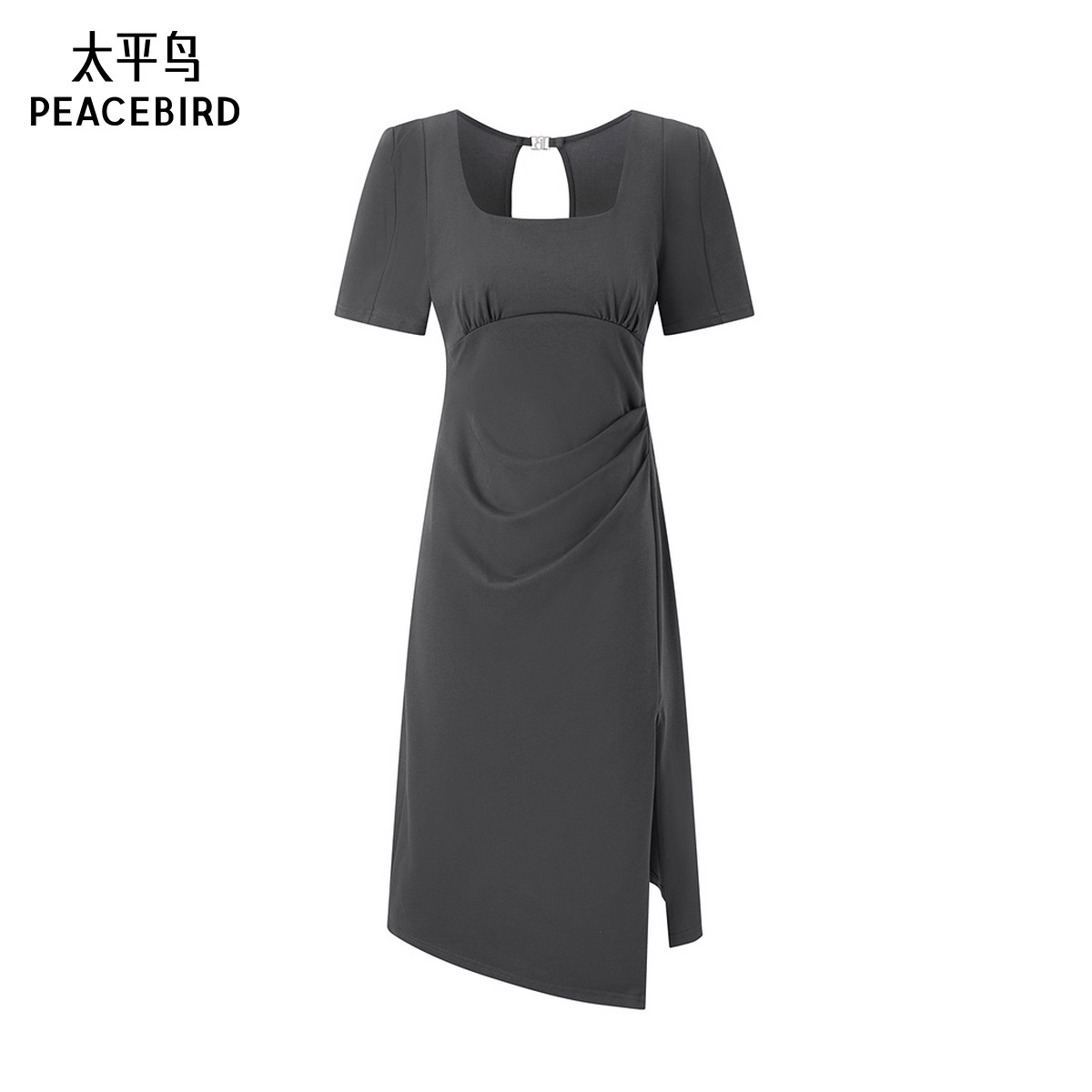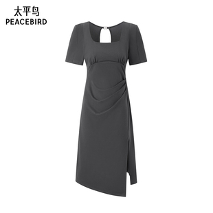 拼接宽松圆领绑带收腰连衣裙18465231 裙子女装 设计师款 佐丹奴长袖
