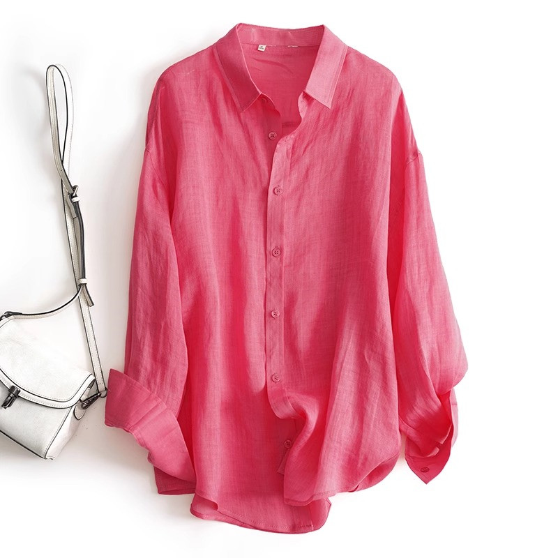 薄款 奥特莱斯专柜正品 防晒衫 女苎麻长袖 宽松空调休闲衬衣 清仓新款