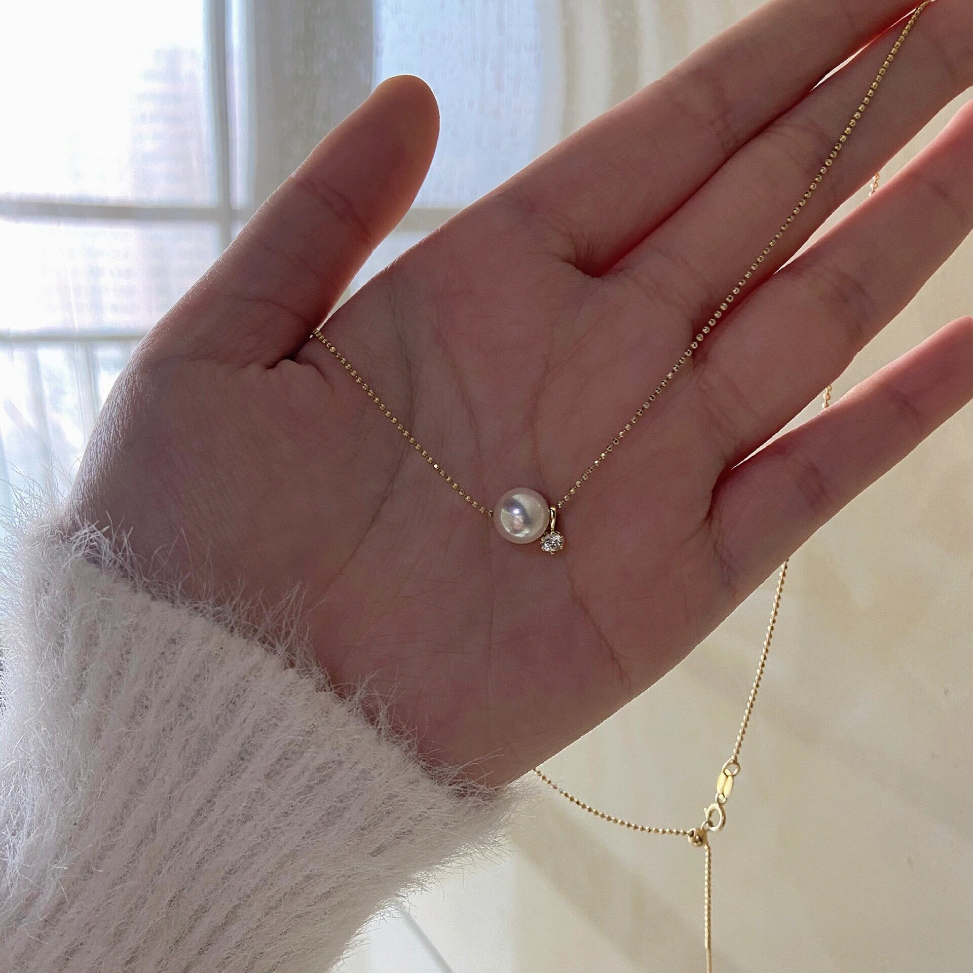 本命年S925纯银海水珍珠项链天然淡水吊坠路路通镶钻强光礼物
