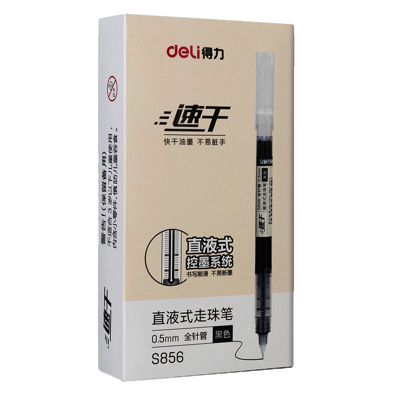 得力S856直液式 走珠笔速干黑笔刷题笔全针管小学生中学生文具批发