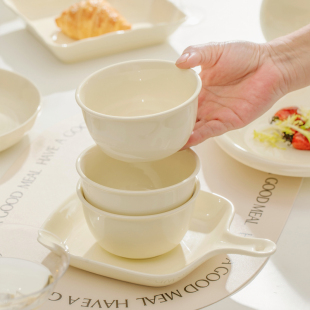 奶油色创意陶瓷餐具烤碗手柄汤碗泡面螺蛳粉家用沙拉焗饭碗一人食