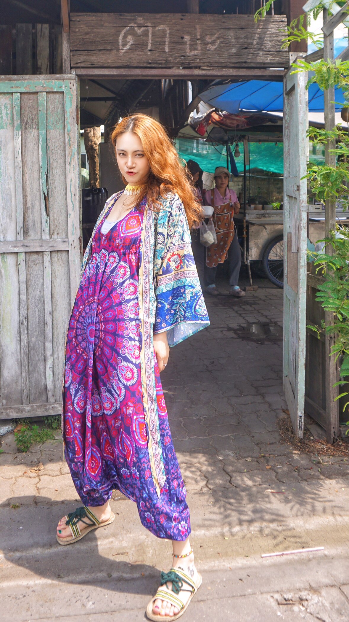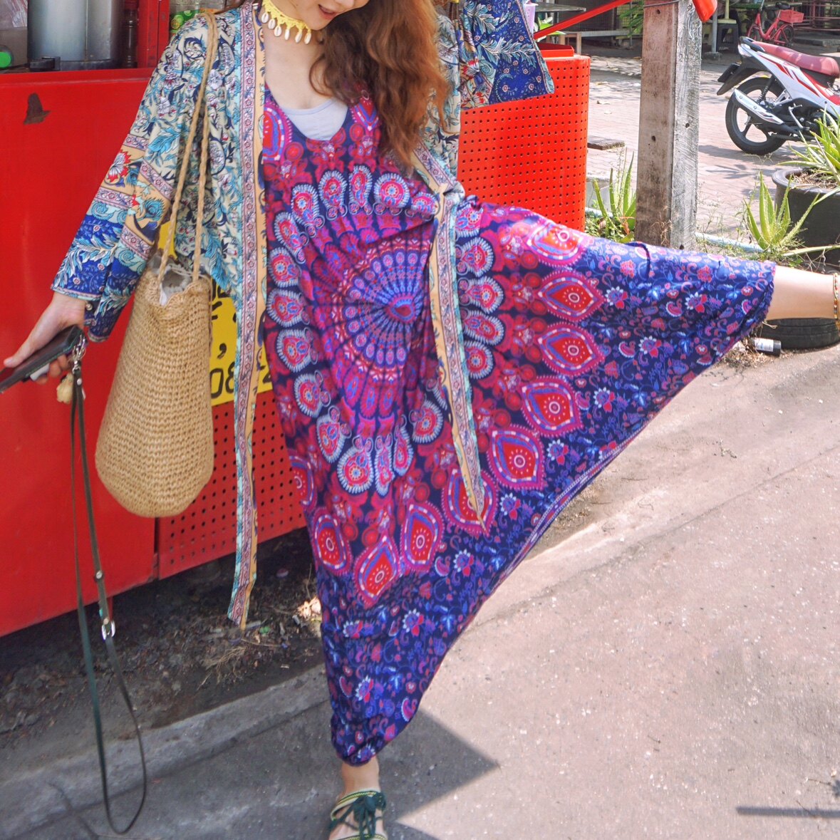 波西米亚沙滩瑜伽大裆裤 罗大娘泰酷辣露背连体长裤 吊带度假背带裤