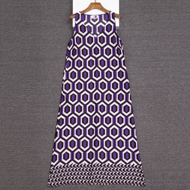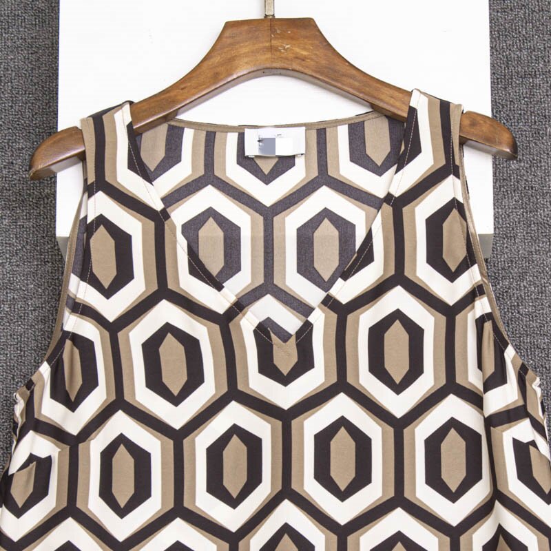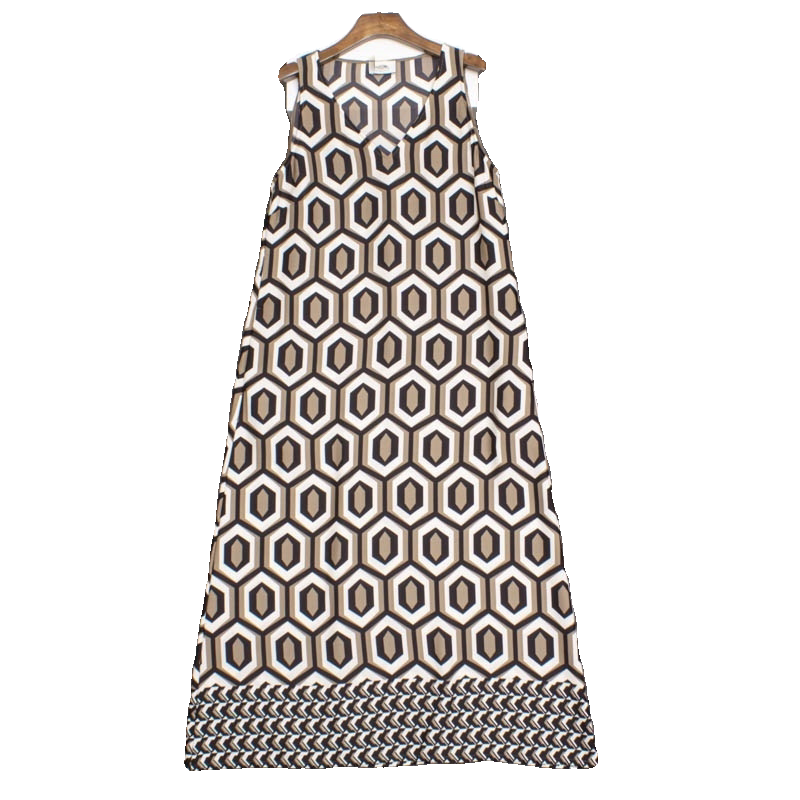 a版 仿缎 几何印花无袖 热卖 背心连衣裙女夏 欧美单小众轻奢2024新款