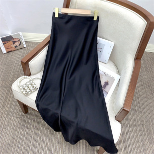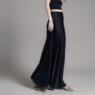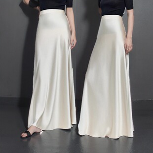 重磅进口三醋酸缎面凉感鎏光垂感半裙高腰斜裁加长拖地显瘦半身裙