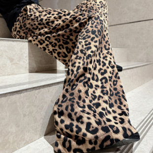 女裤 慵懒风豹纹裤 女高腰垂感拖地休闲裤 阔腿裤 潮 子女春夏流行风格