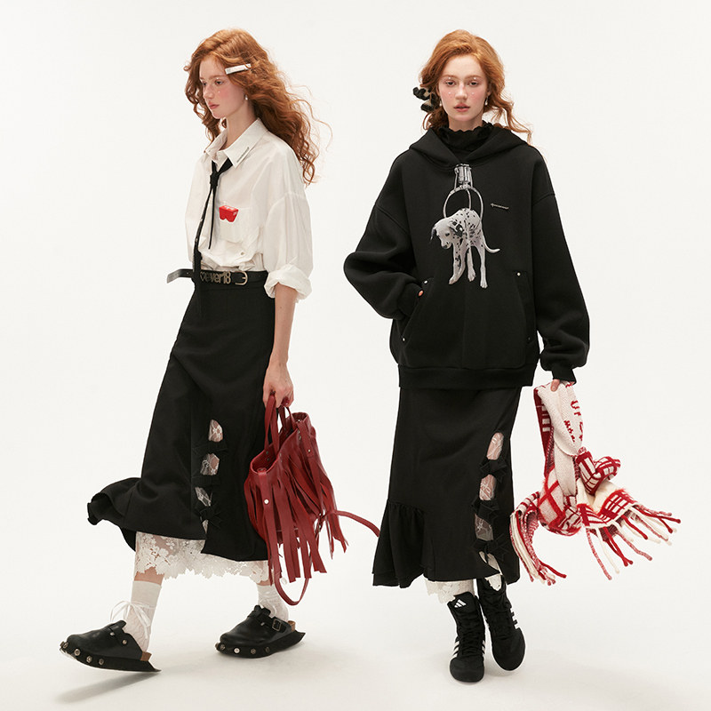 屁帘围裙帘摆裙半身裙子 ins重工系带叠穿蕾丝短款 2025春新款 韩版