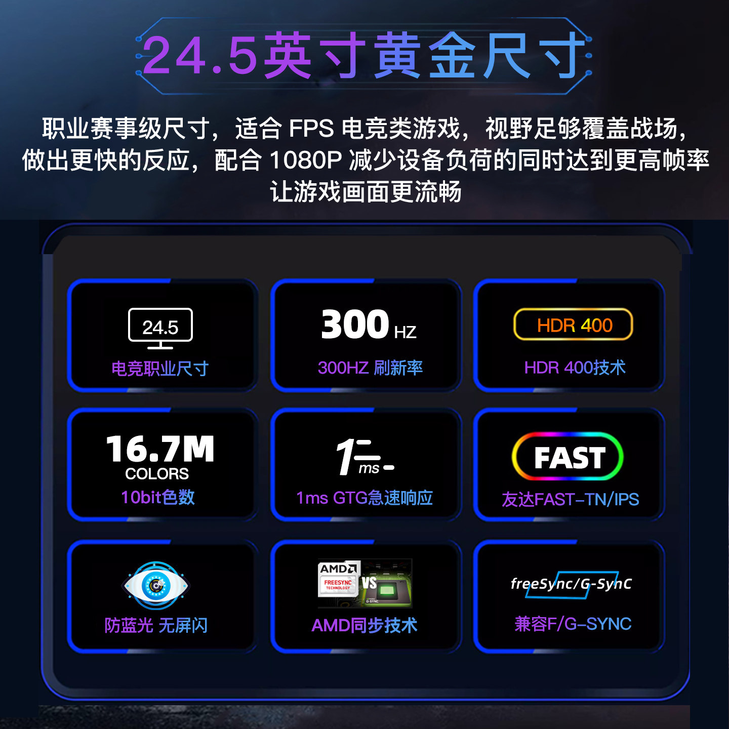 24.5英寸400hz电竞显示器高刷240hz电脑27寸360hz台式 300hz280屏