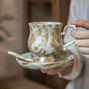 巷子尾〖特别好看 咖啡杯〗中古粗陶杯子马克杯小众咖啡杯碟套装