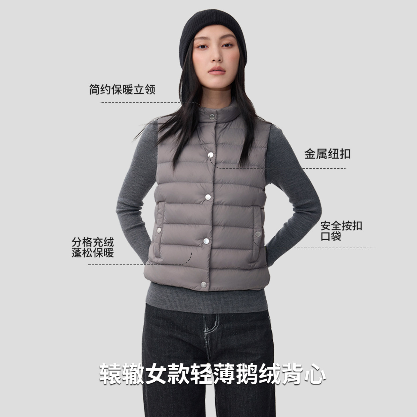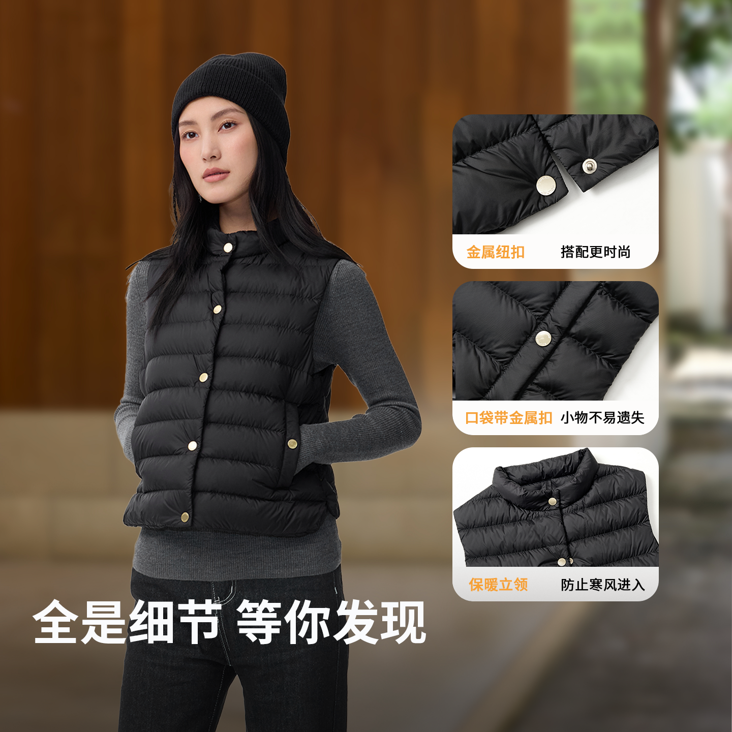辕辙君羽鹅绒服马甲女款 羽绒背心内胆61084 700蓬秋冬轻薄立领时尚