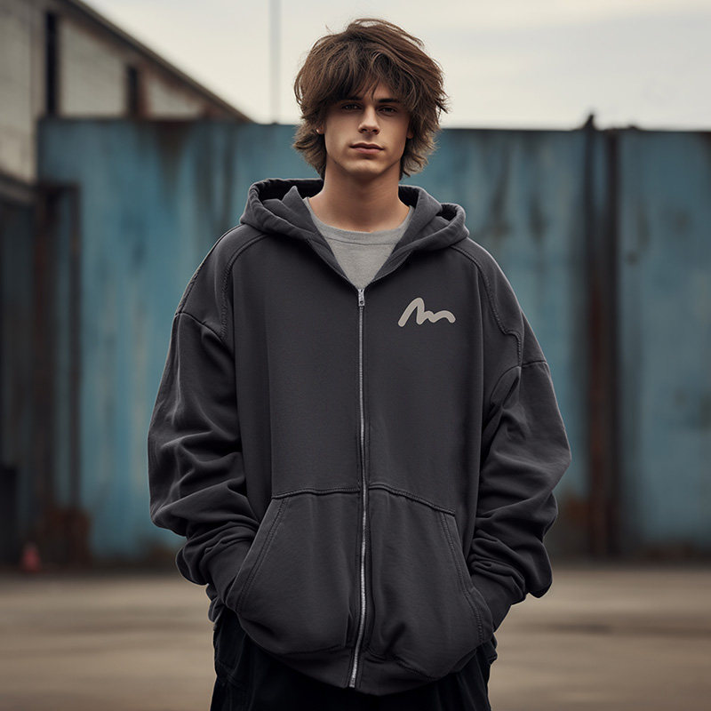 宽松简约连帽男士 2026新款 胖子加肥加大码 开衫 外套 拉链卫衣秋冬季