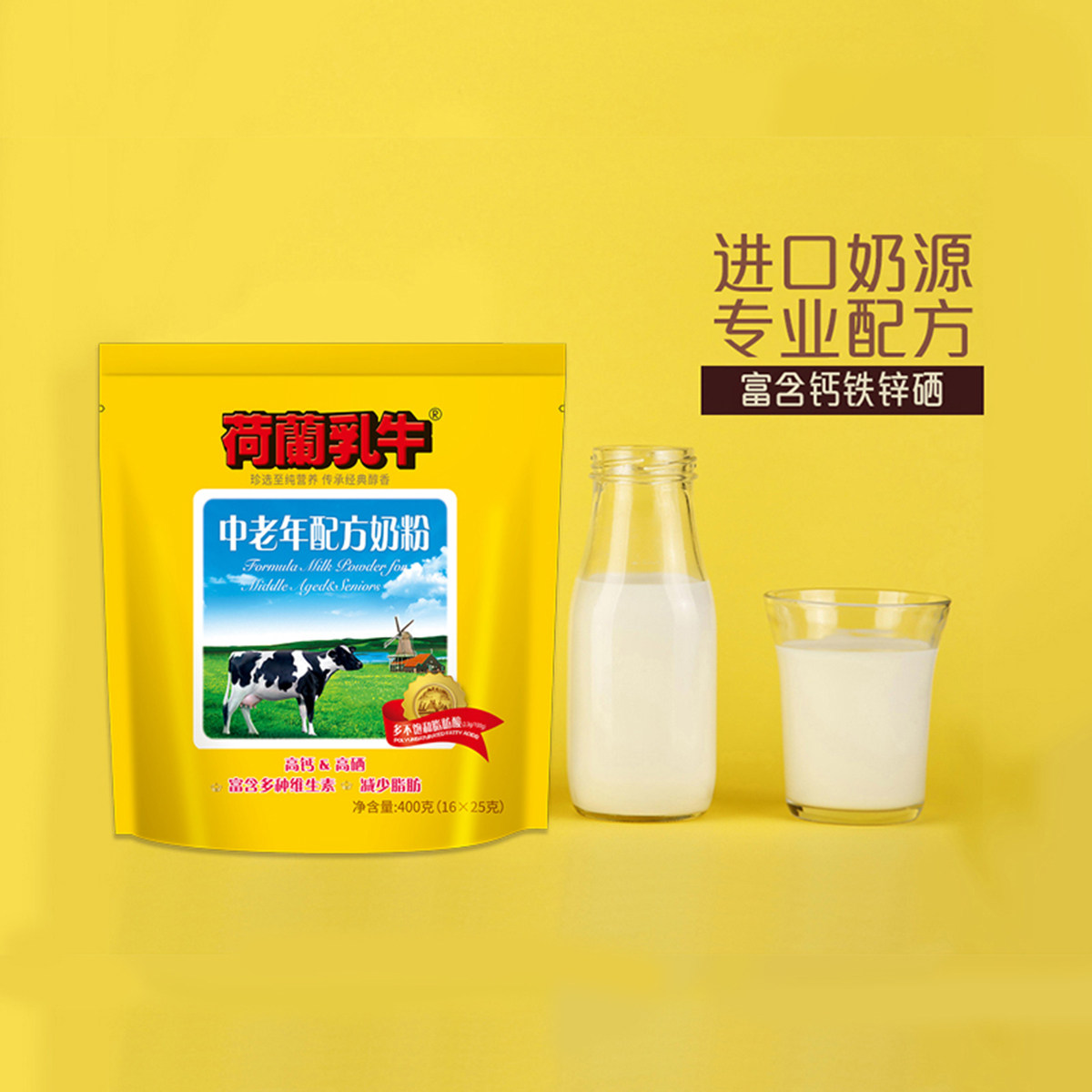 荷兰乳牛中老年配方高钙高硒奶粉400g16条装 便携成人老人早餐奶粉