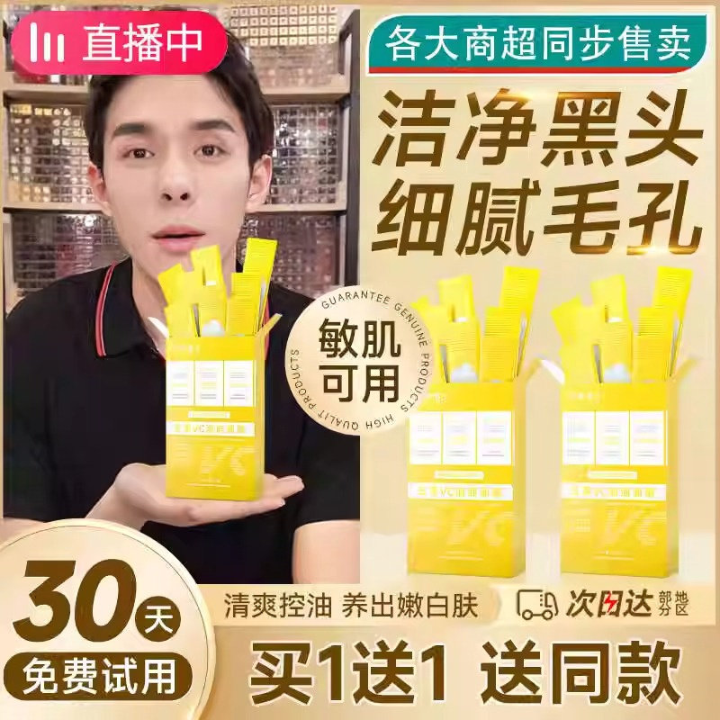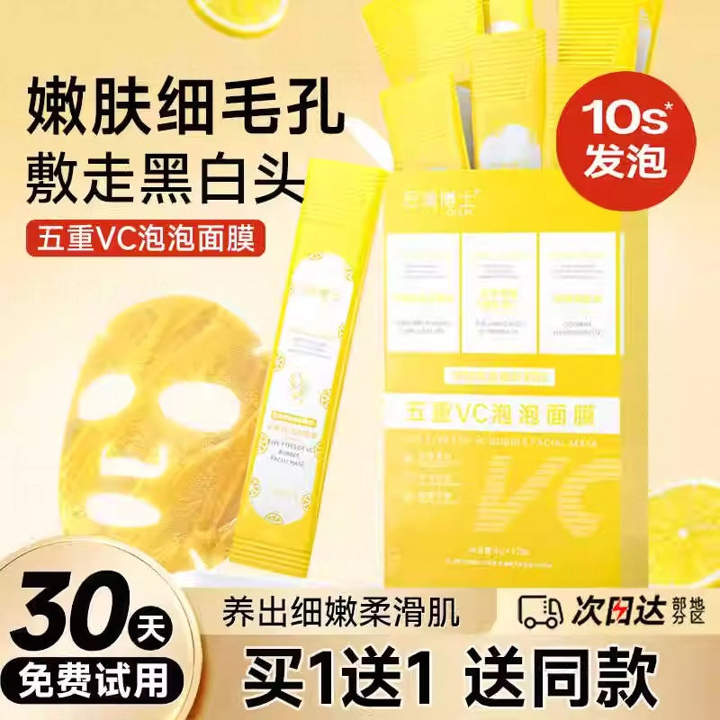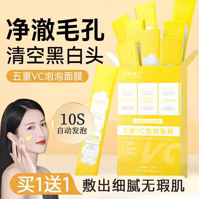 五重VC泡泡面膜收缩毛孔去黑头粉刺闭口泥膜深层清洁 3盒 79元