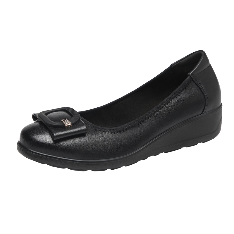 坡跟妈妈浅口单鞋 新款 牛皮简约女士皮鞋 时尚 红蜻蜓女鞋 豆豆鞋 秋季
