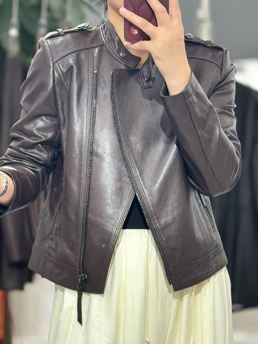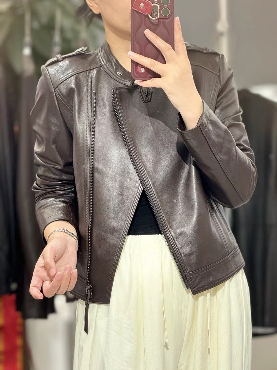 2026春立领真皮皮衣女显瘦绵羊皮夹克洋气修身 机车短外套欧洲站