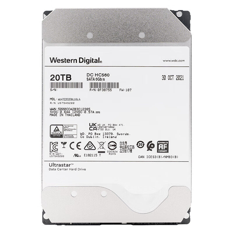 20T企业级硬盘WUH722020BLE6L4 HC560氦气 7200转CMR 西部数据