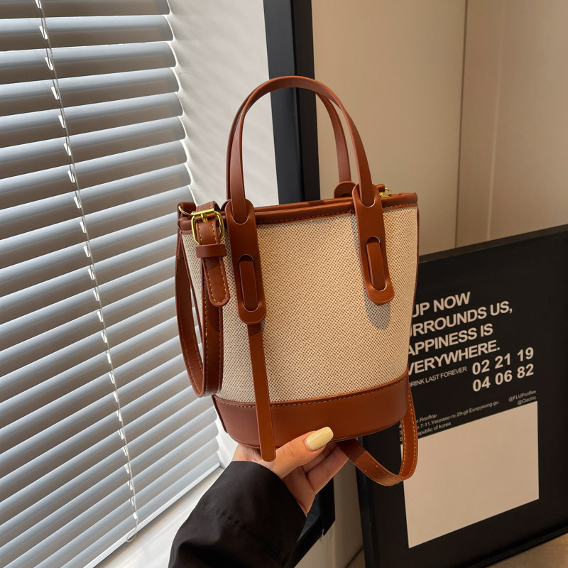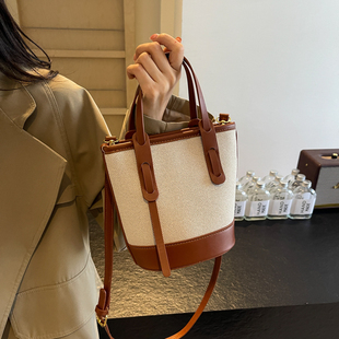 高级感撞色手拎小包包女包2025新款 单肩包 百搭洋气斜挎水桶包时尚