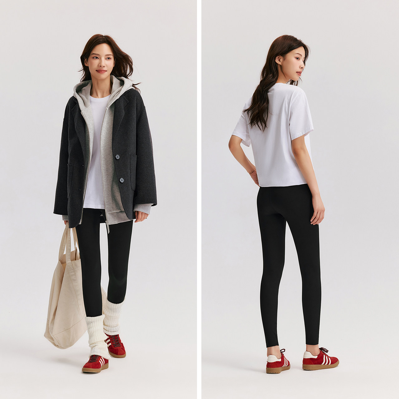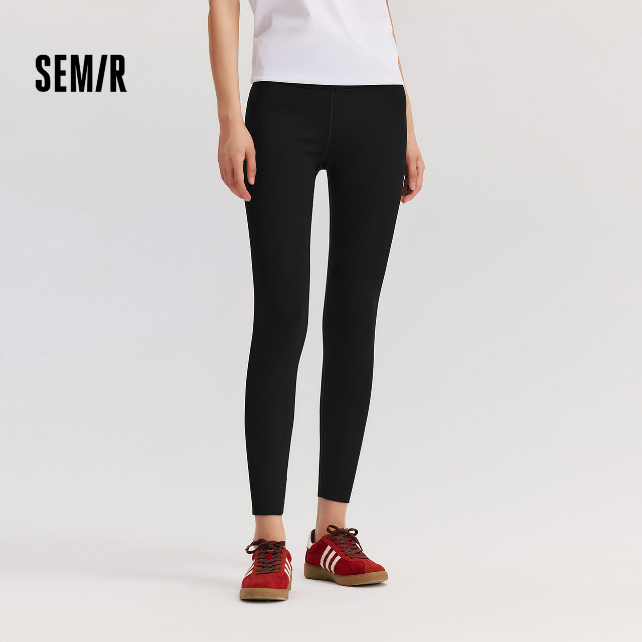 女加绒九分鲨鱼裤 小脚裤 高弹2024冬季 黑色修身 百搭 新款 森马休闲裤
