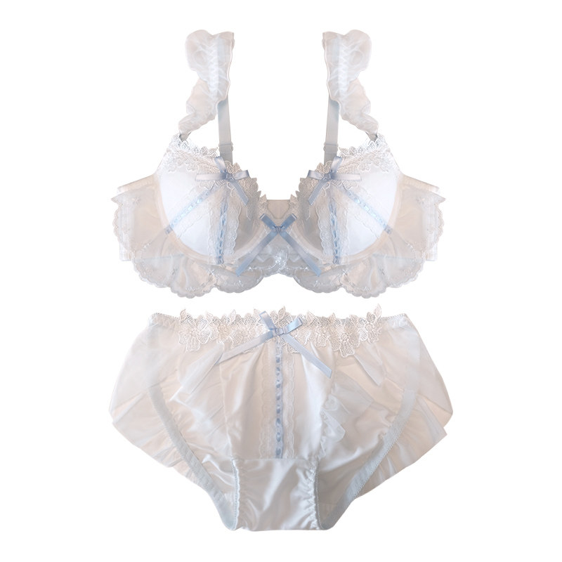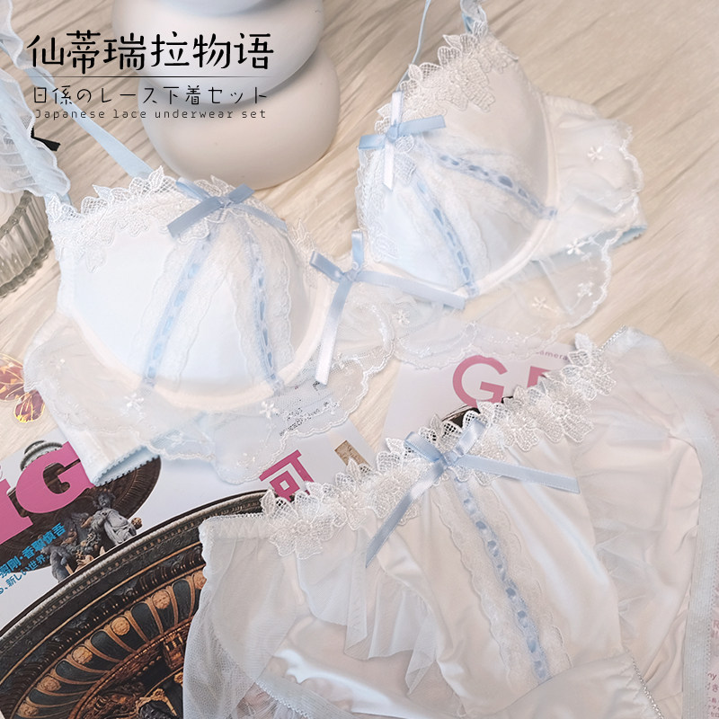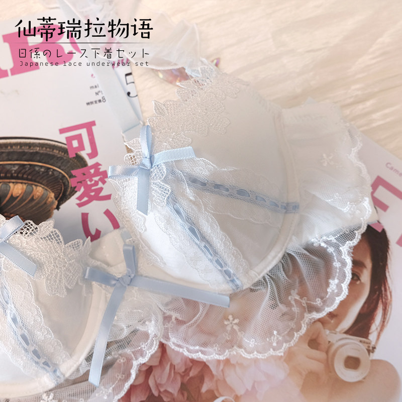 大胸纯欲日系聚拢上托少女文胸薄款 可爱内衣套装 胖mm大码