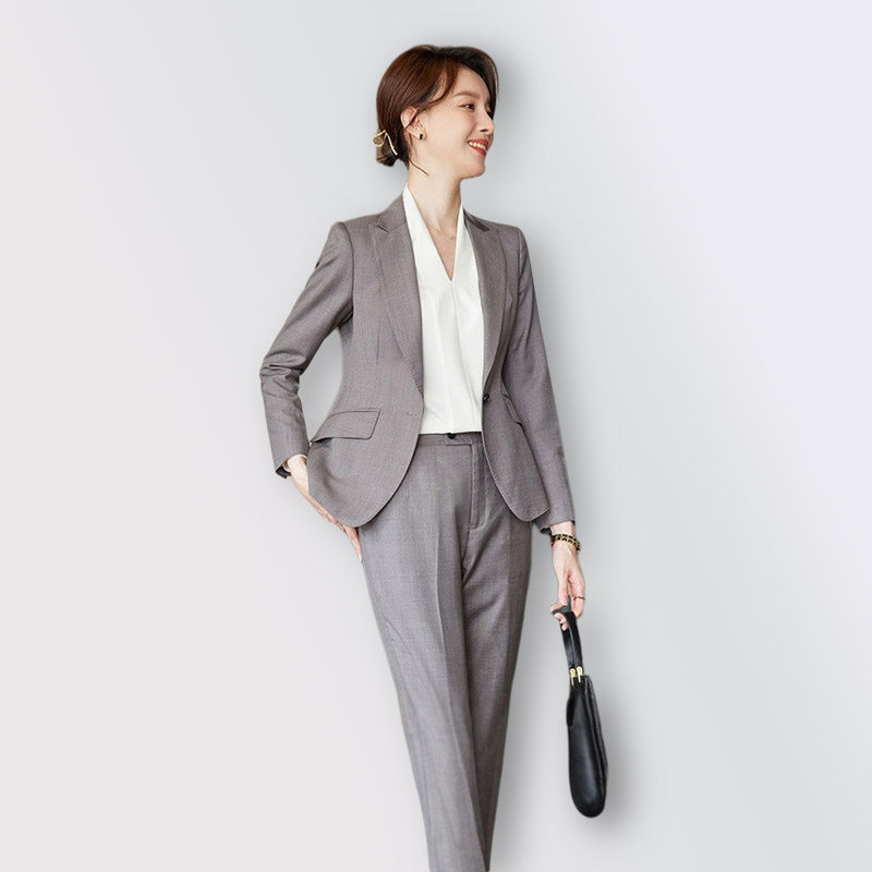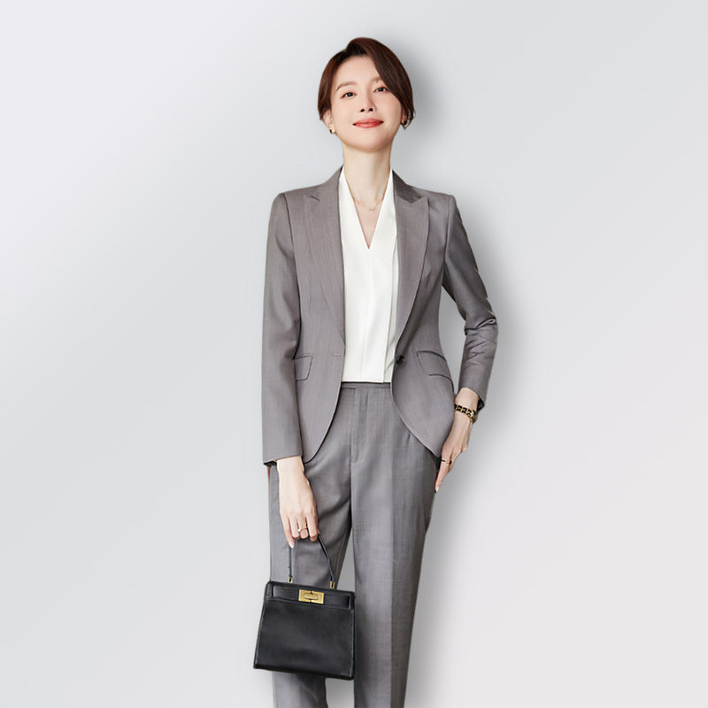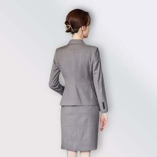 套裙高端正式 正装 女神范灰色西装 职场气质工作服前台职业装 女套装