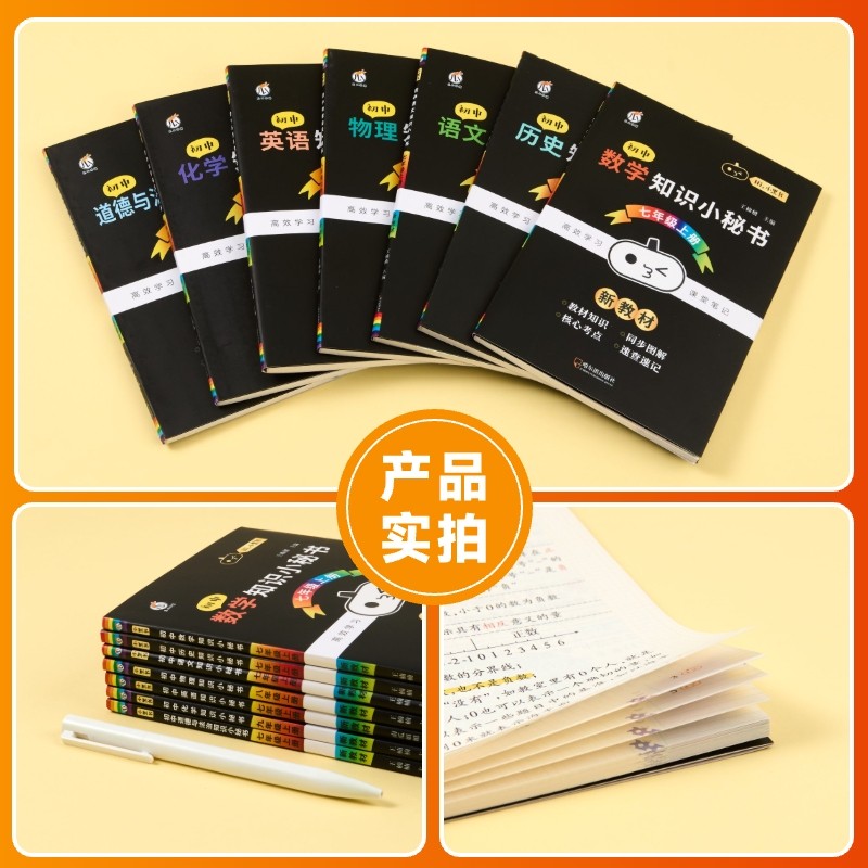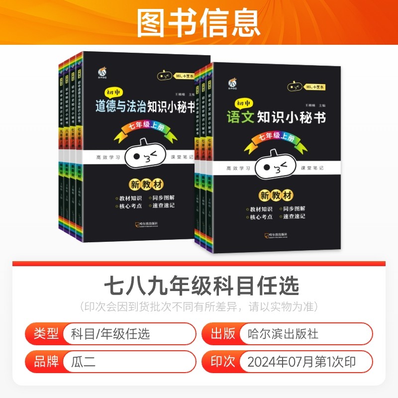 2025版 小黑书初中全套小秘书七年级下册语文数学英语政治历史地理生物小四门必背知识点清单八九年级上册教材全解解读课堂笔记