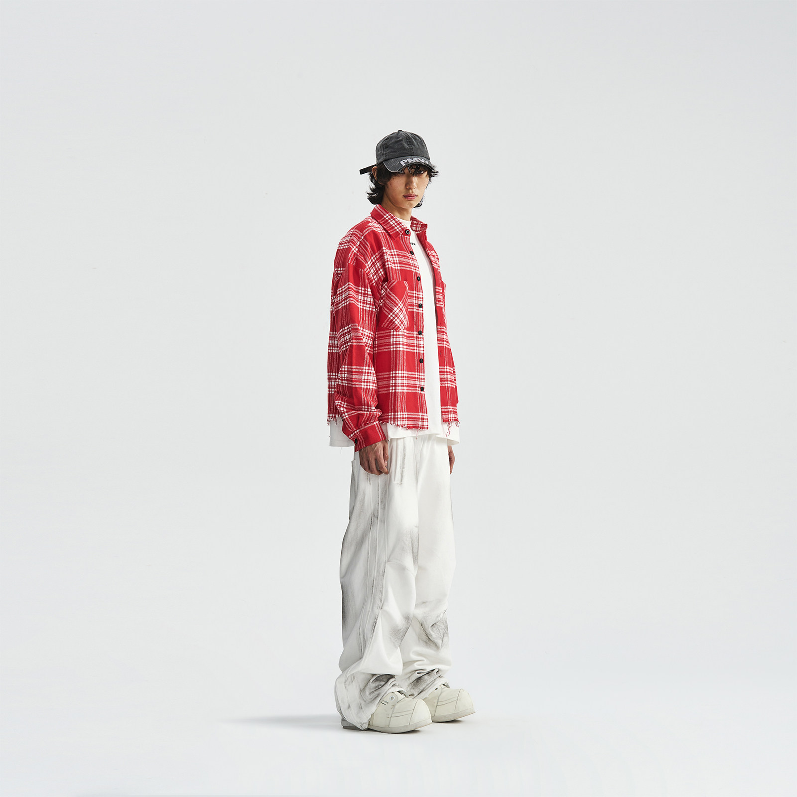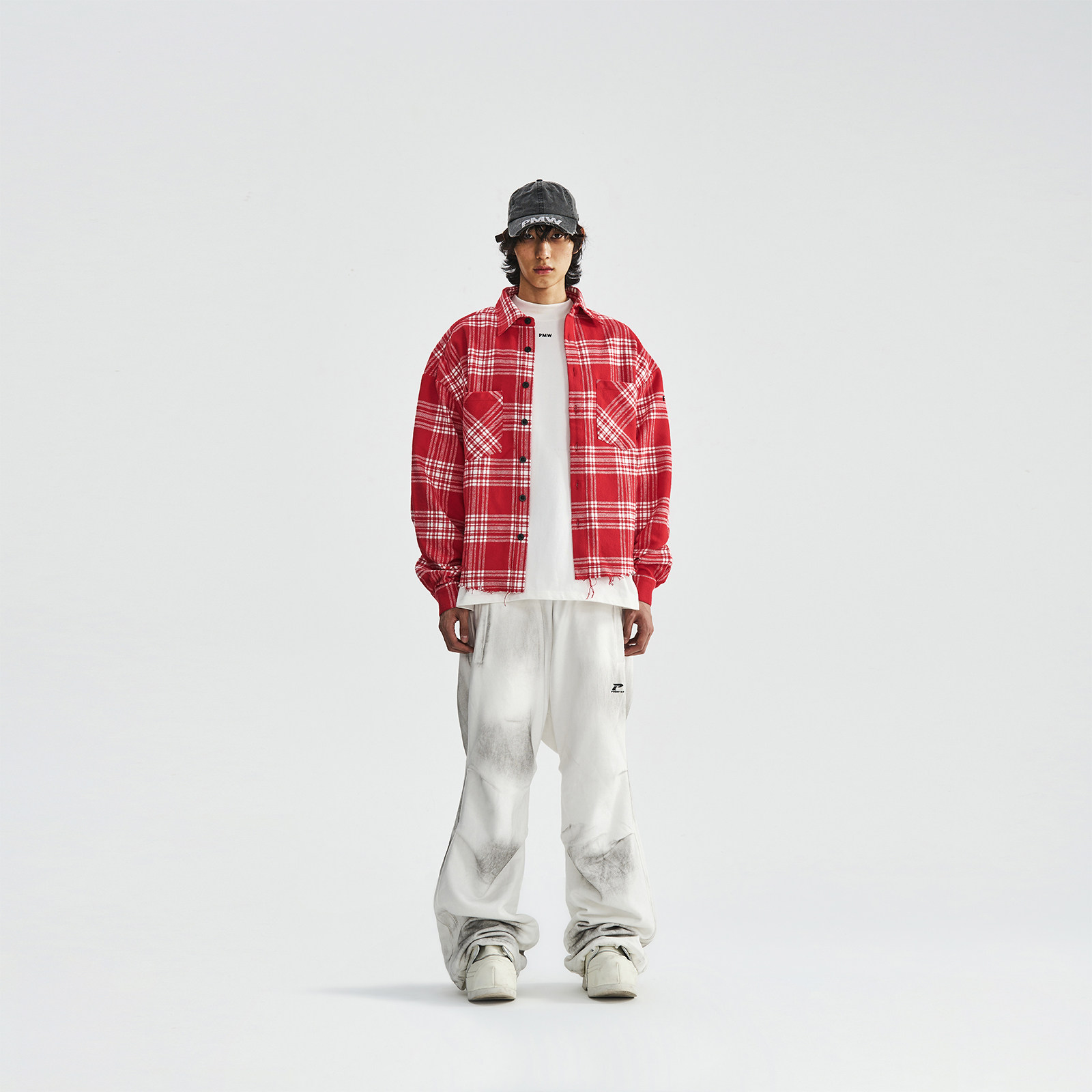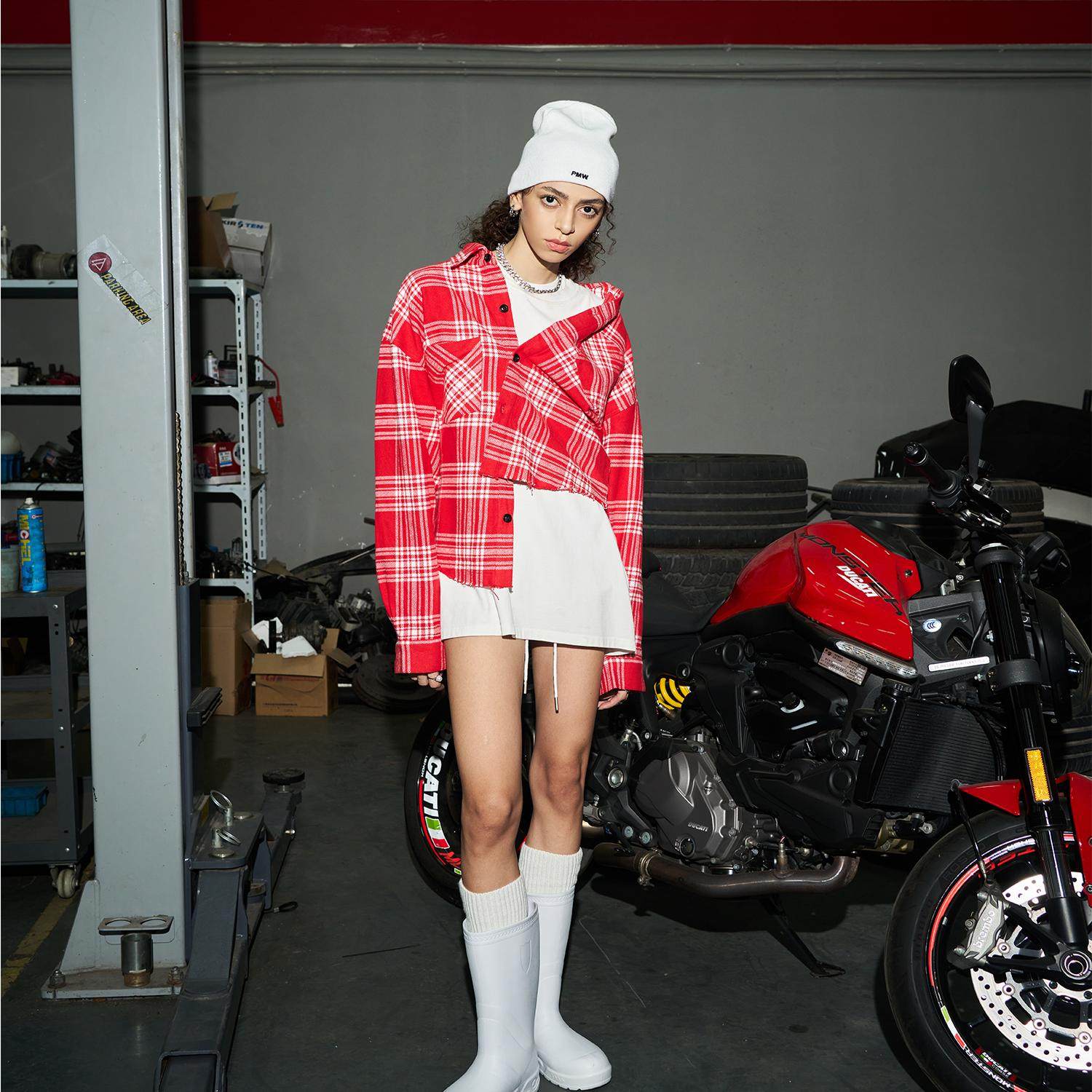 符龙飞同款 外套情侣款 美式 磨毛工艺衬衫 手工破坏复古格纹衬衫 PMW