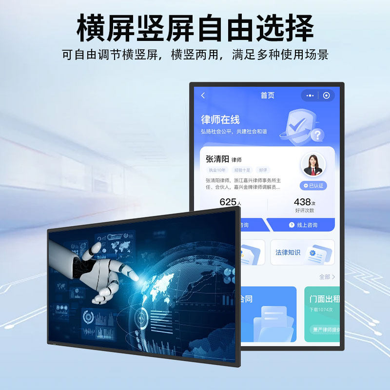 壁挂广告机奶茶店电梯超薄智能4K安卓触摸高清网络液晶显示屏竖播放器吊挂电视宣传一体32 100寸