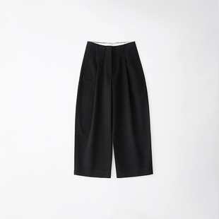 子潮 女秋冬加绒胖妹妹mm设计感高腰宽松显瘦休闲阔腿裤 黑色西装 裤