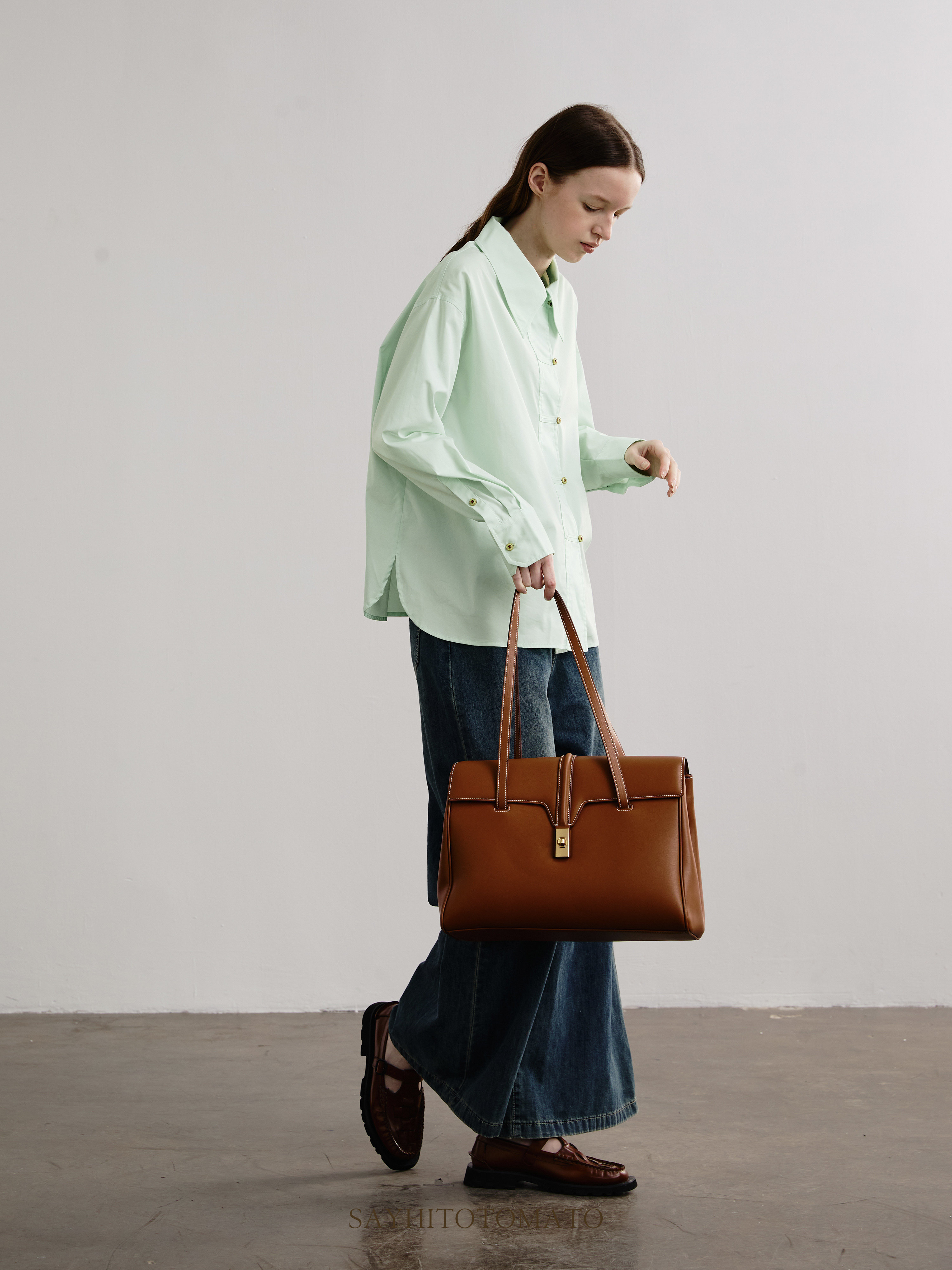 衬衫 宽门襟纯色匹马棉oversize宽松长袖 薄荷黎明 Sayhitotomato
