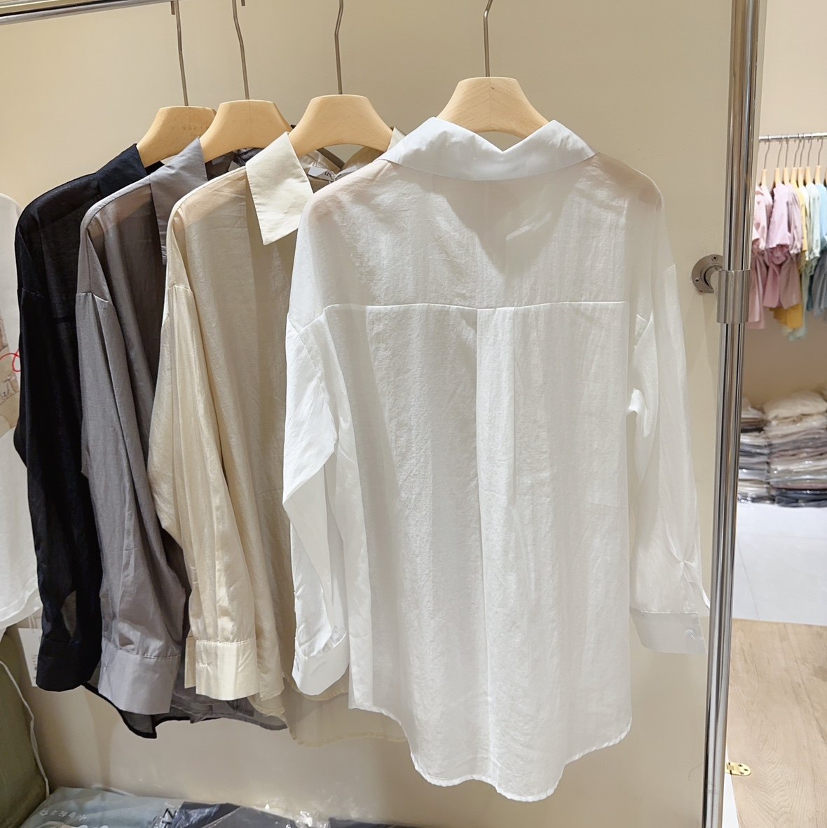 侧开叉上衣微透视 防晒衫 轻薄天丝棉衬衫 简约气质纯色衬衣女夏季
