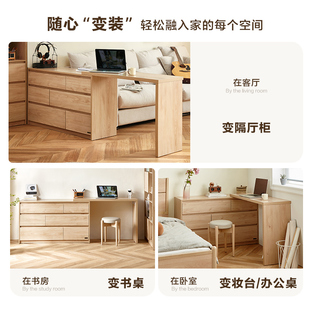 全友家居原木奶油风伸缩梳妆台斗柜一体卧室收纳柜化妆桌转角书桌