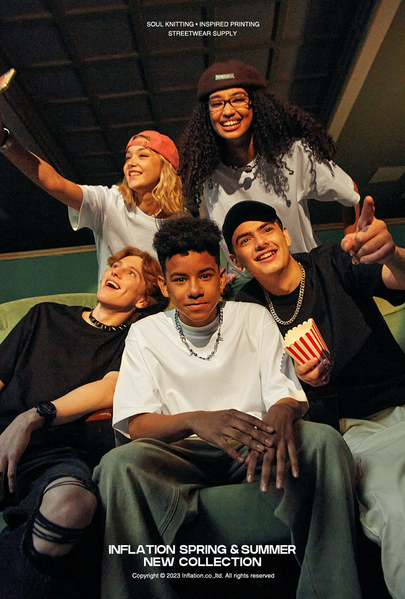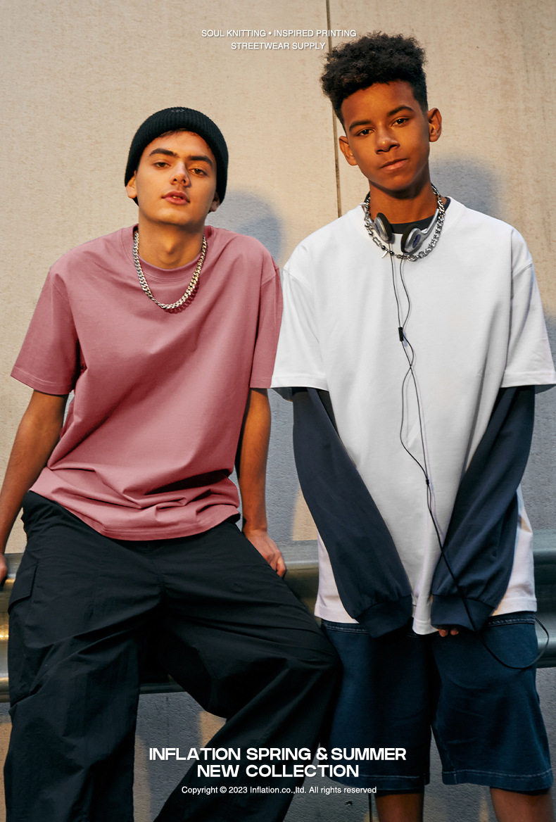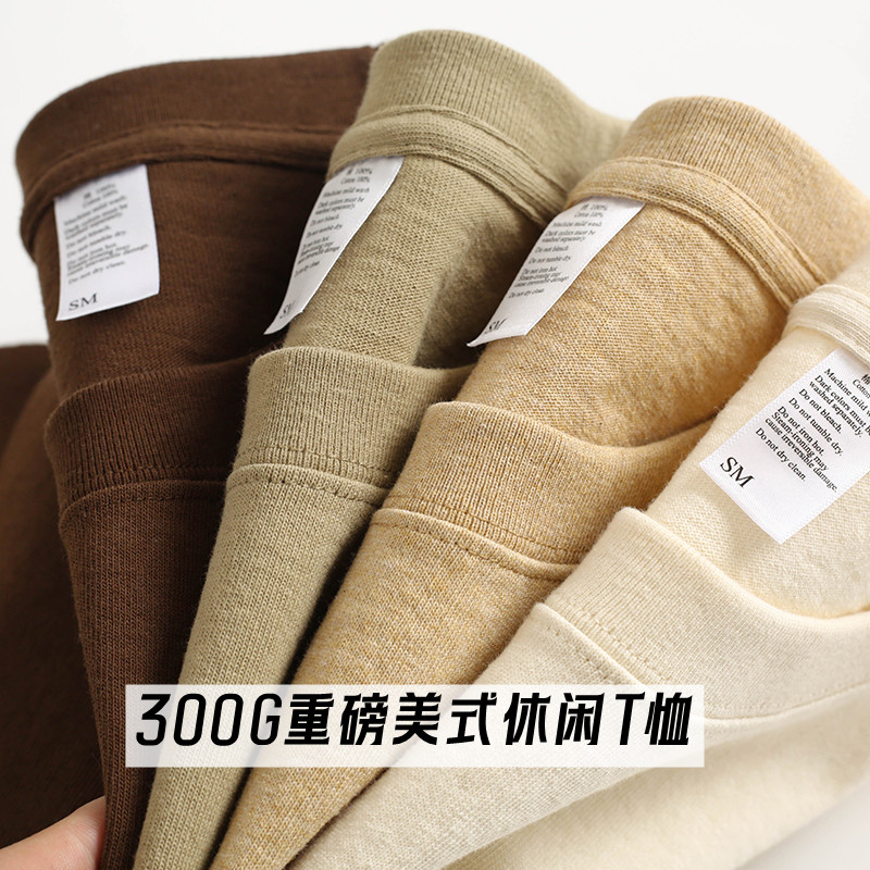 KICKSTA重磅300G高克重纯棉美式 落肩T恤 休闲宽松男女简约纯色短袖