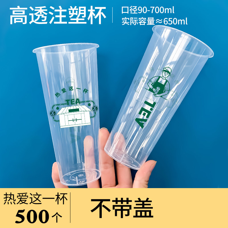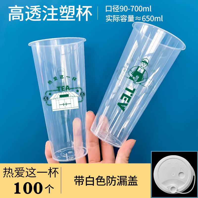90口径一次性奶茶杯带盖700ml商用注塑高透杯定制logo热爱这一杯