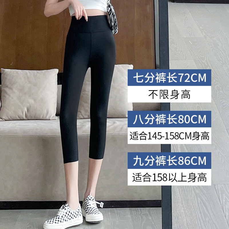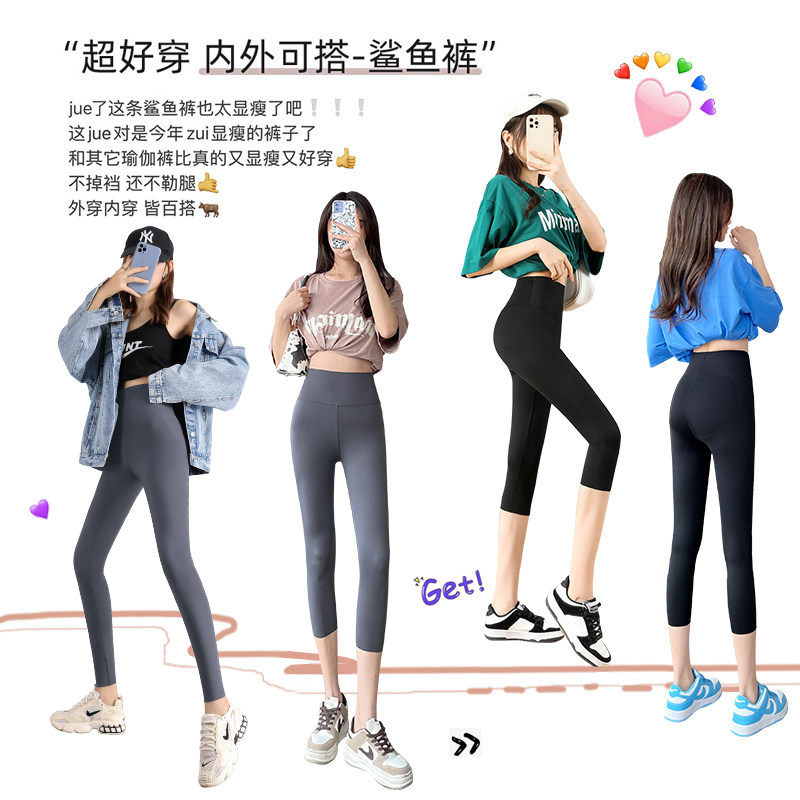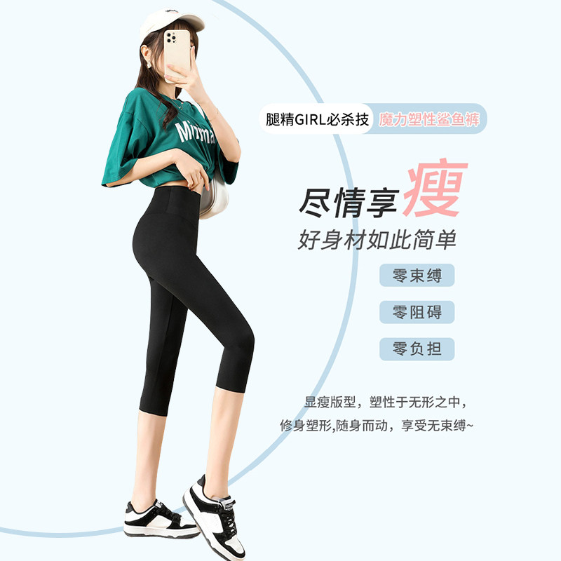 高腰收腹提臀黑色打底裤 薄款 女外穿春秋夏季 八分小个子瑜伽鲨鱼裤