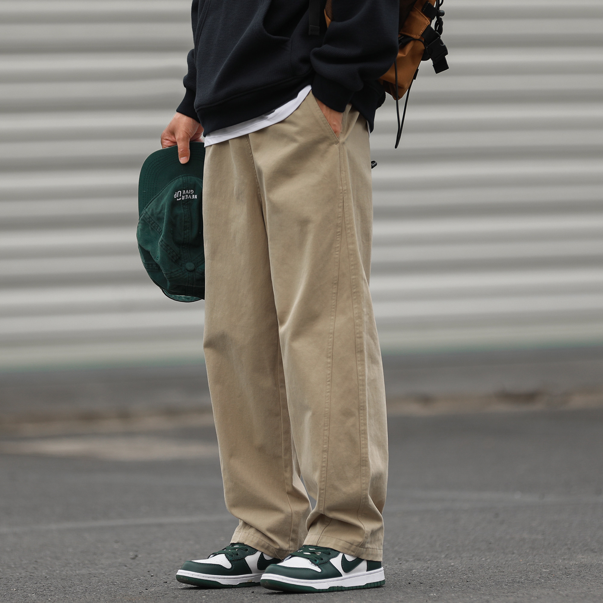 潮牌休闲直筒长裤 嘿马七作日系复古春秋男士 裤 工装 子 宽松分割美式