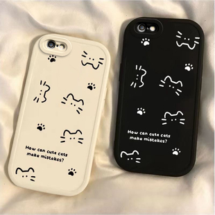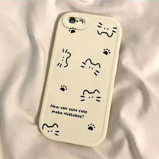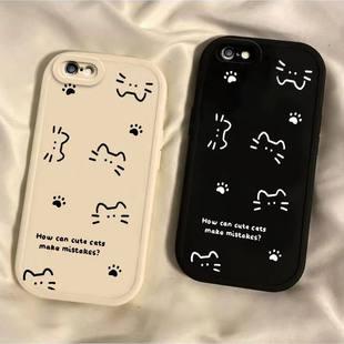iPhoneXSmax防摔XR外壳5SE硅胶11pro全包12 8plus手机壳新款 13小众卡通i14P可爱线条猫ip15男女 适用苹果6s
