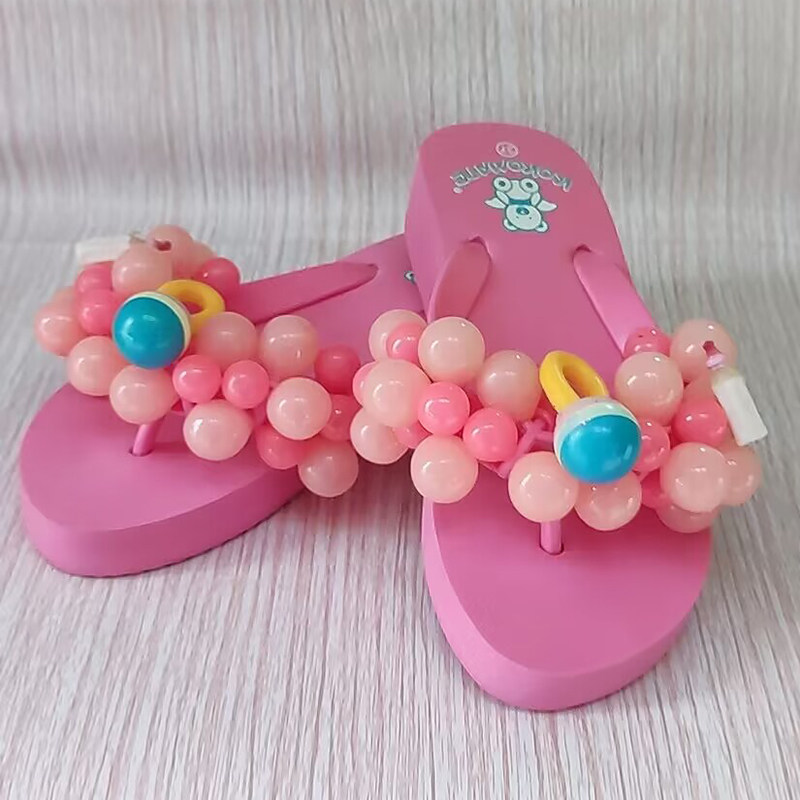 女凉鞋 厚底坡跟学生凉拖鞋 可以DIY球球人字拖海边沙滩鞋 葡萄拖鞋