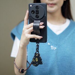 两针一线适用oppofindx8ultra手机壳新款 女高级感真皮支架斜挎可背Findx8pro全包摄影镜头壳保护外套挂绳防摔