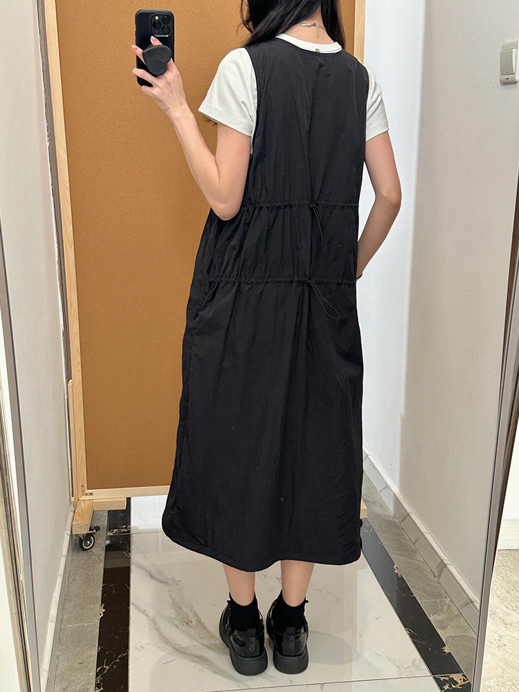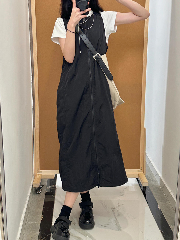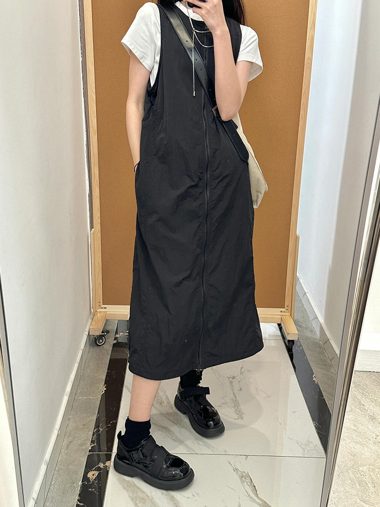 设计感速干背心裙子 胖mm显瘦遮肚连衣裙夏季 黑色工装 背带裙女大码