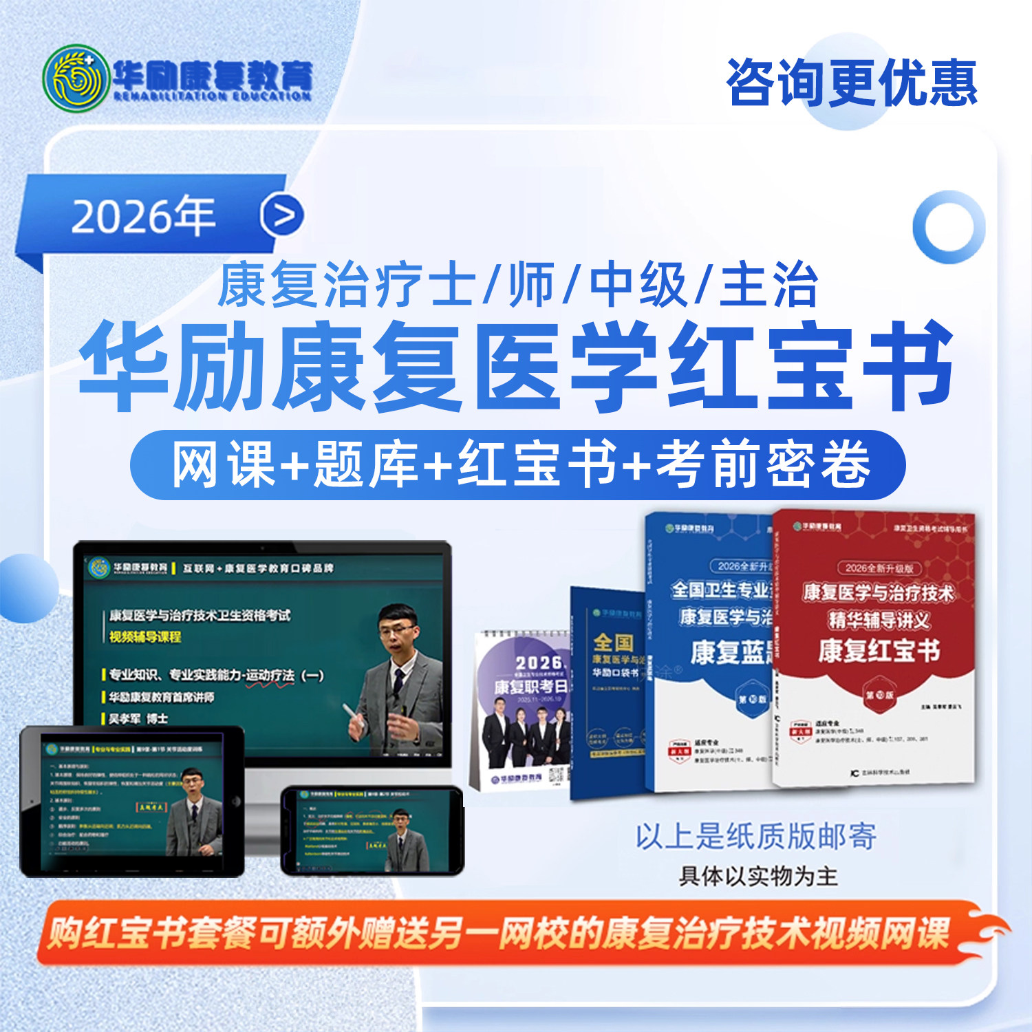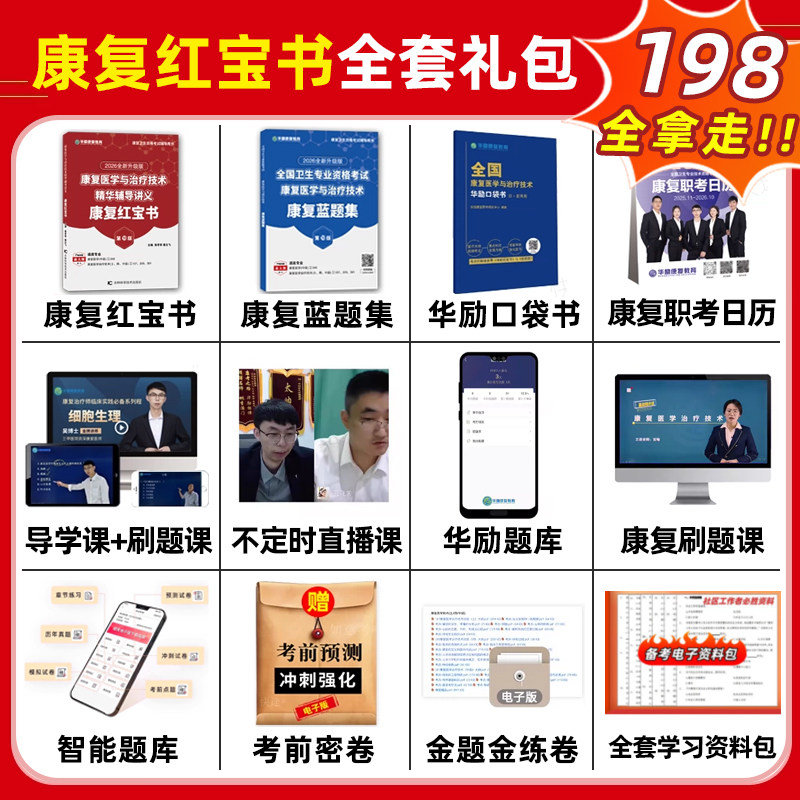 2026年华励康复红宝书蓝题集口袋书网课康复医学治疗技术士师初级中级主治医师考试视频课程历年真题教材模拟试卷资料习题电子书25