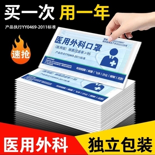 医用外科口罩一次性医疗三层蓝色白正品 官方旗舰店成人单独立包装